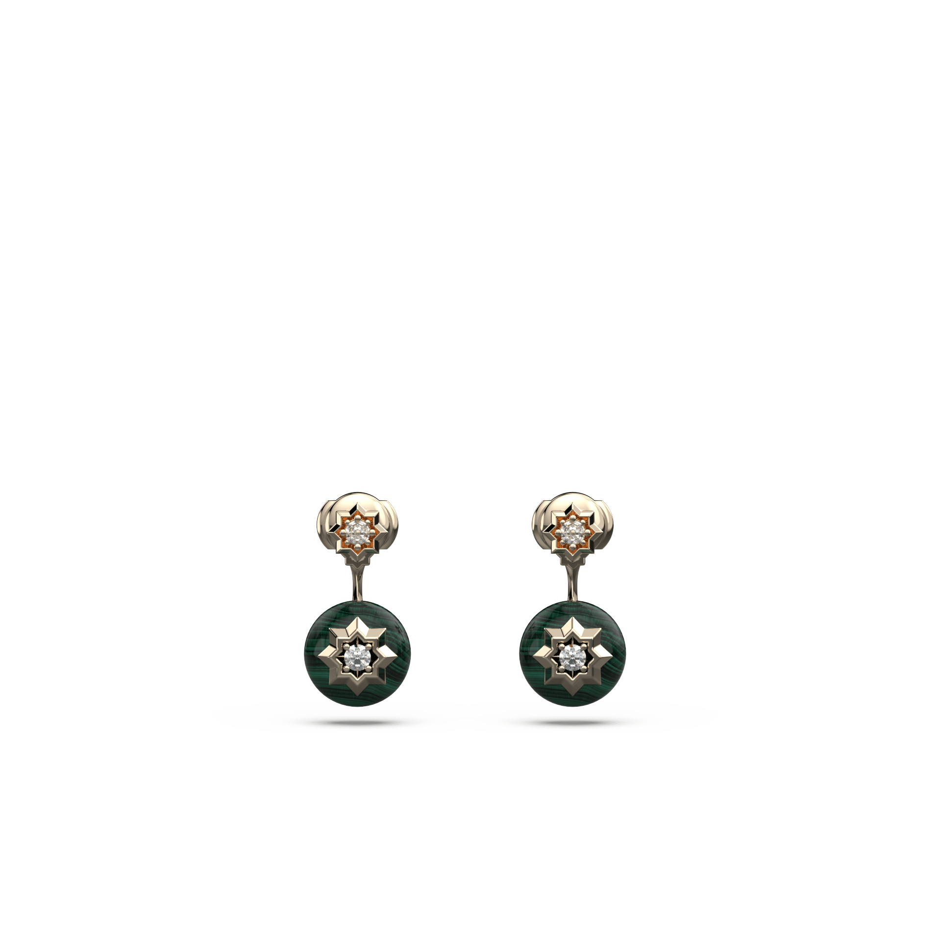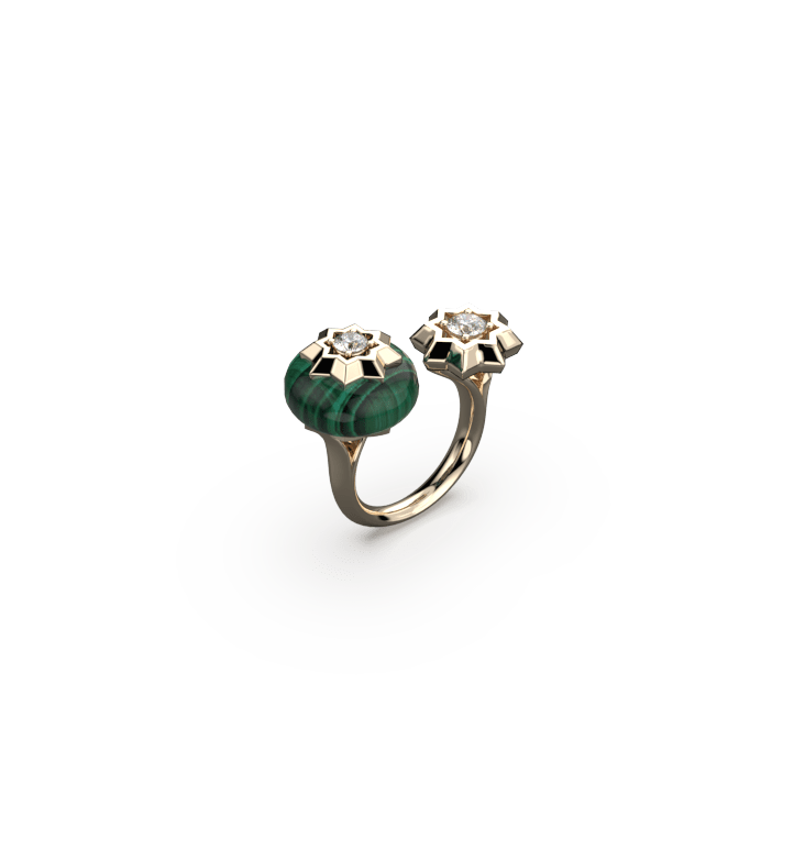 Des globes de pierres fines taillés avec une précision artistique qui offre une ode à la lumière et à la féminité. La chaleur de l’or se marie au mystère du lapis lazuli, à la sophistication de la malachite et à la profondeur de l’onyx. Chaque pierre, choisie avec un soin méticuleux pour sa beauté unique, raconte l’histoire de notre terre avec émotion.