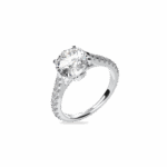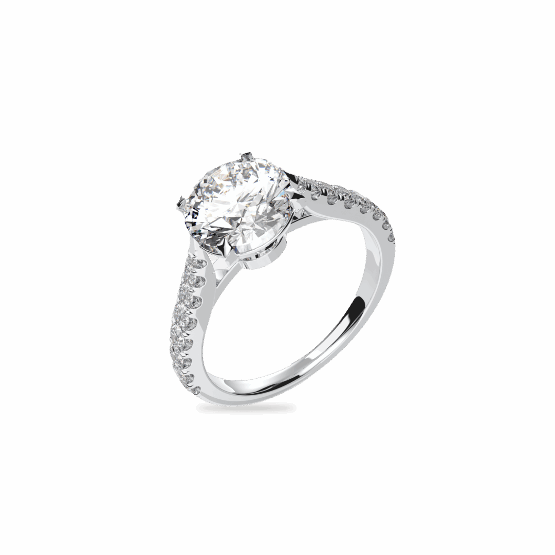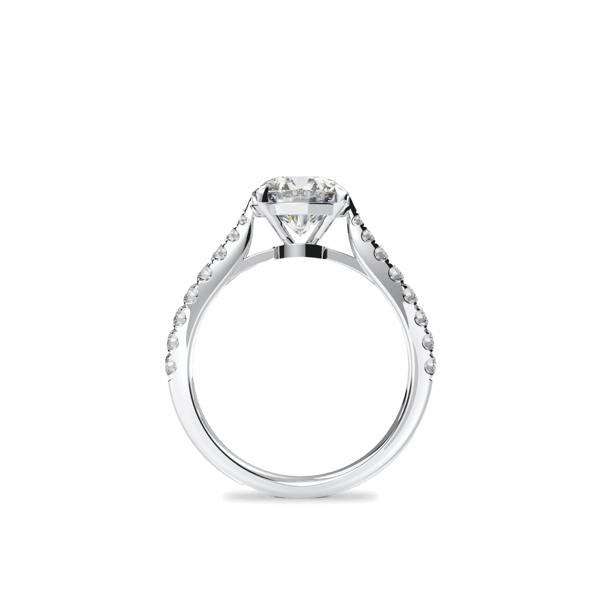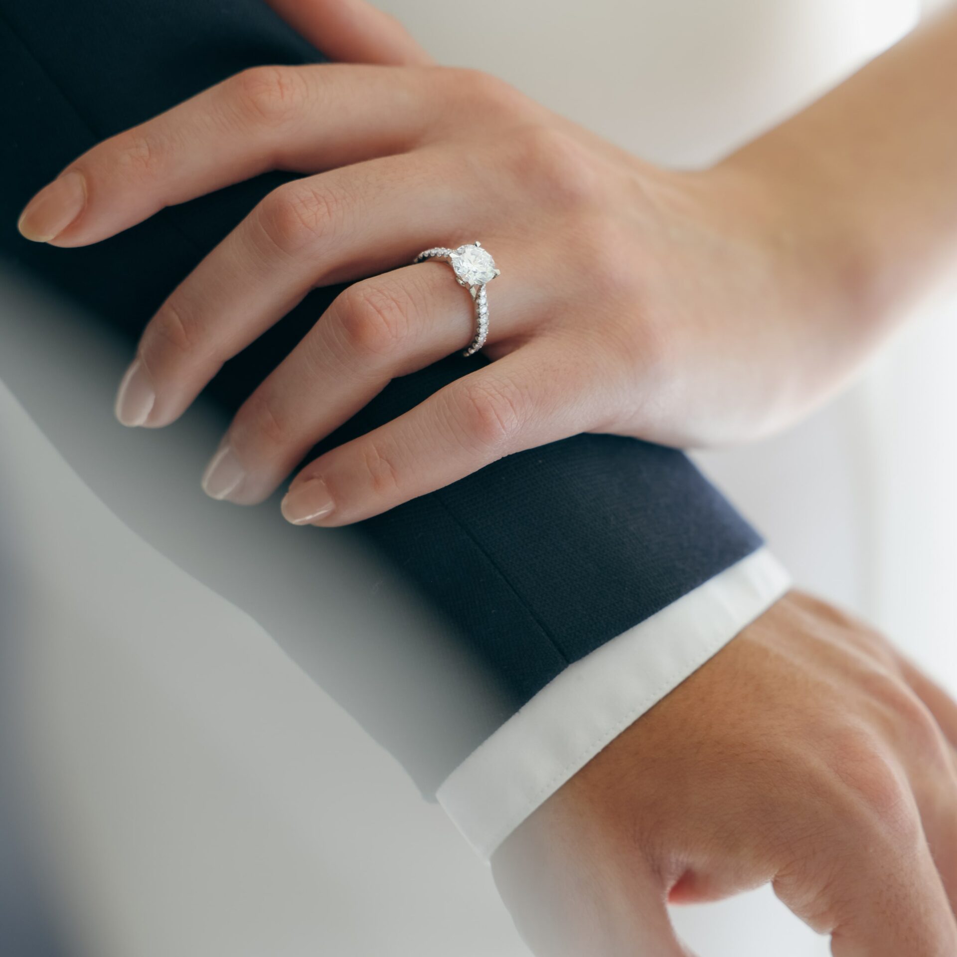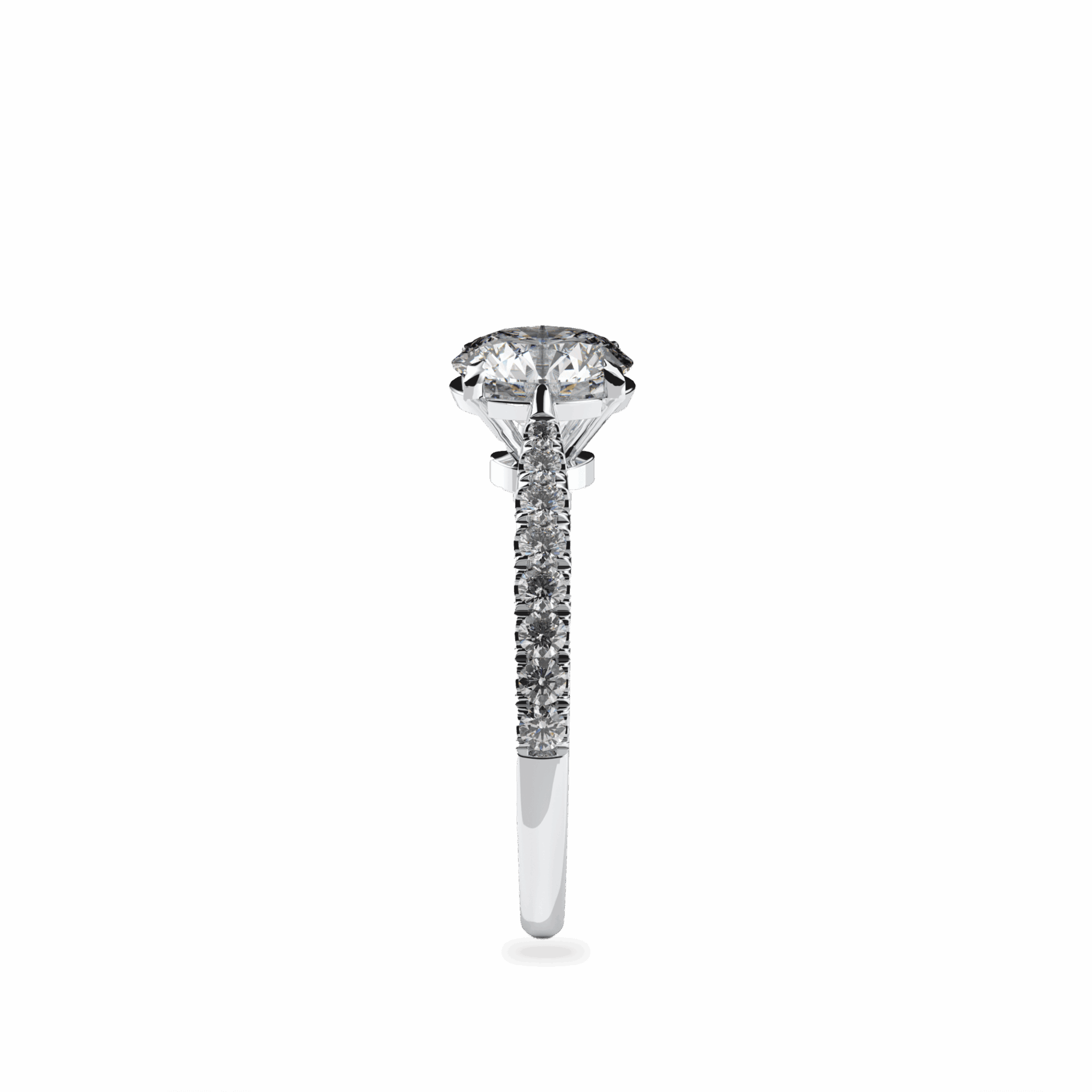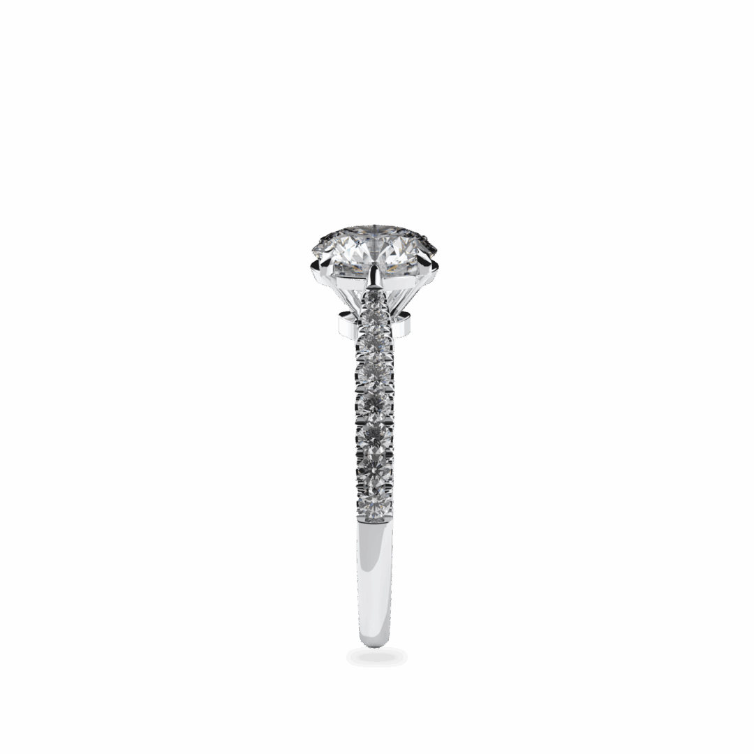 A tribute to the French woman, the Louise solitaire captures the essence of Parisian jewelry. A delicate setting of half-paved diamonds surrounds a central 0.70-carat diamond, sparkling with rare beauty.