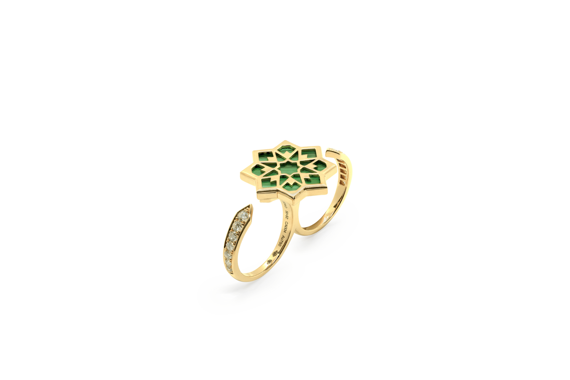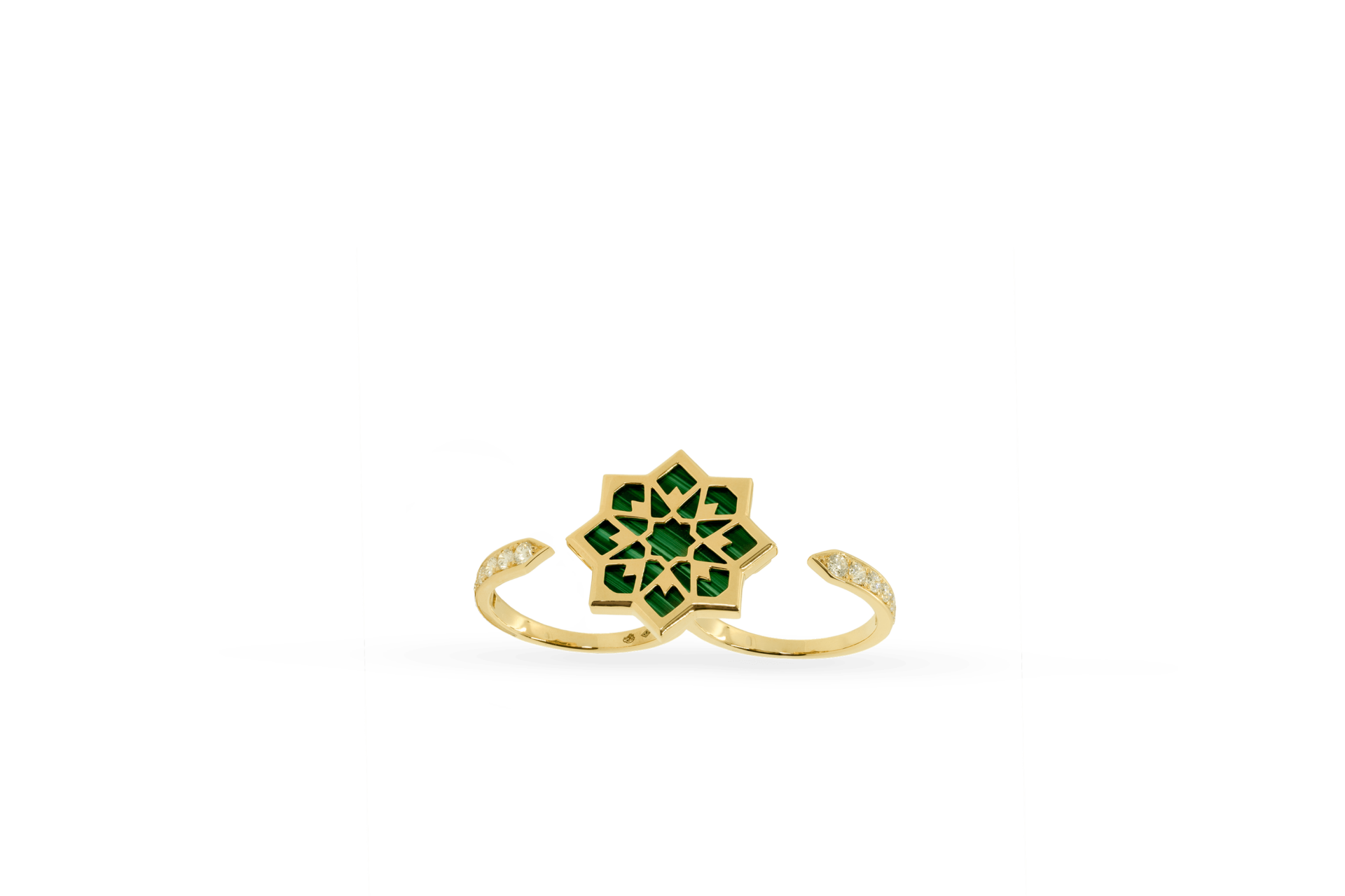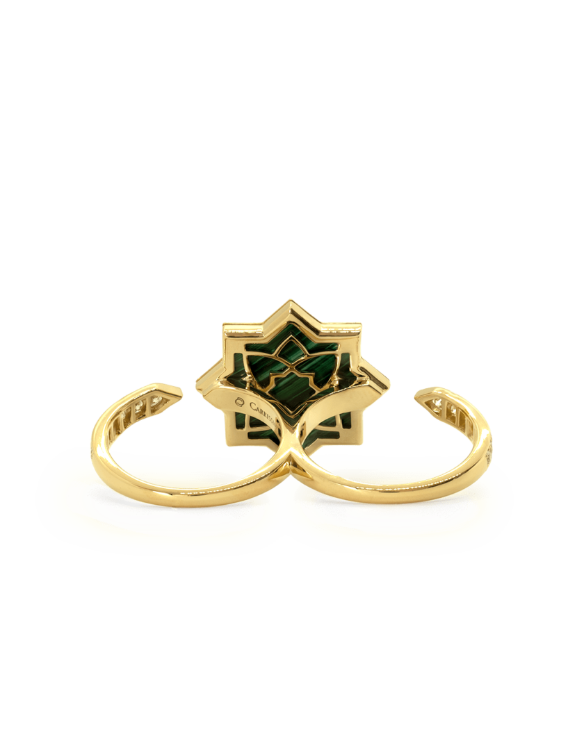BAGUE DOUBLE CAPTIV OR JAUNE MALACHITE ET DIAMANTS