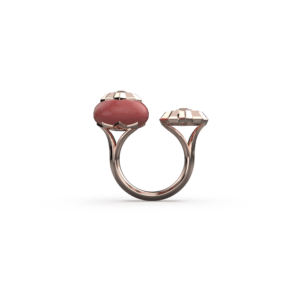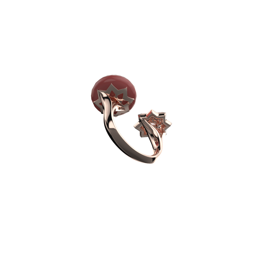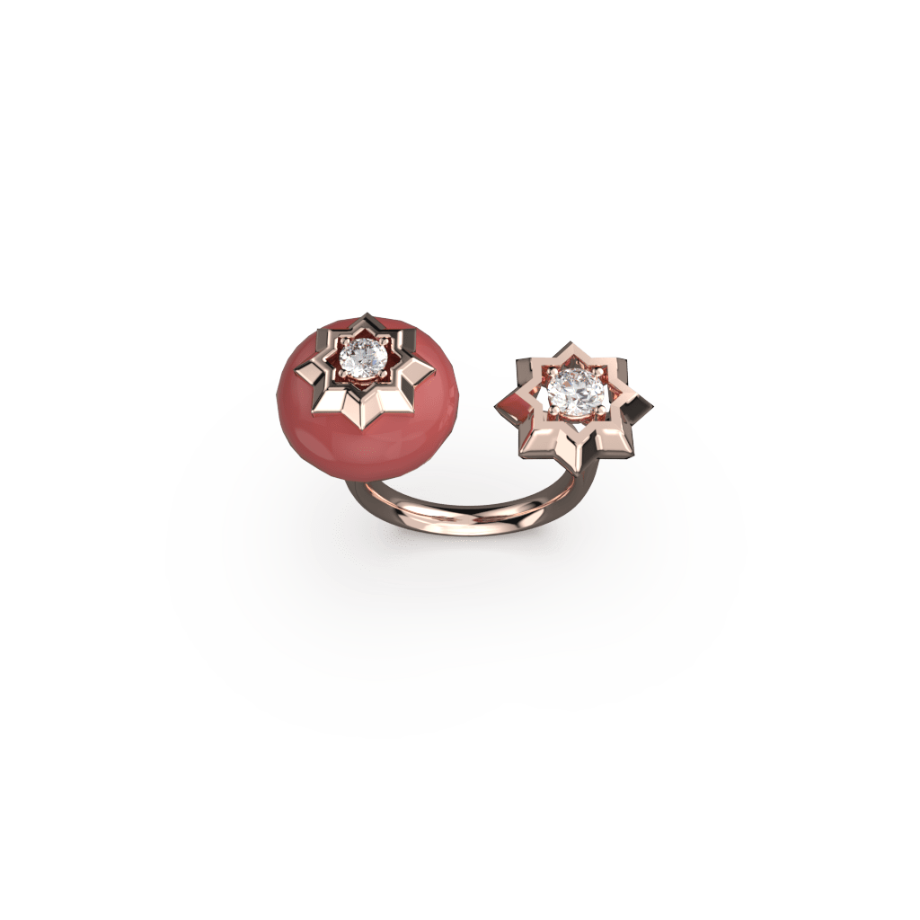 Évoquant l’élégance intemporelle et la splendeur céleste, cette demi-bague se caractérise par son corps délicat disponible en or blanc, rose ou jaune et une pierre taillée en malachite, cornaline, lapis lazuli ou onyx est délicatement encranée par des étoiles scintillantes, chacune surmonté de diamants d’exceptions.