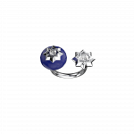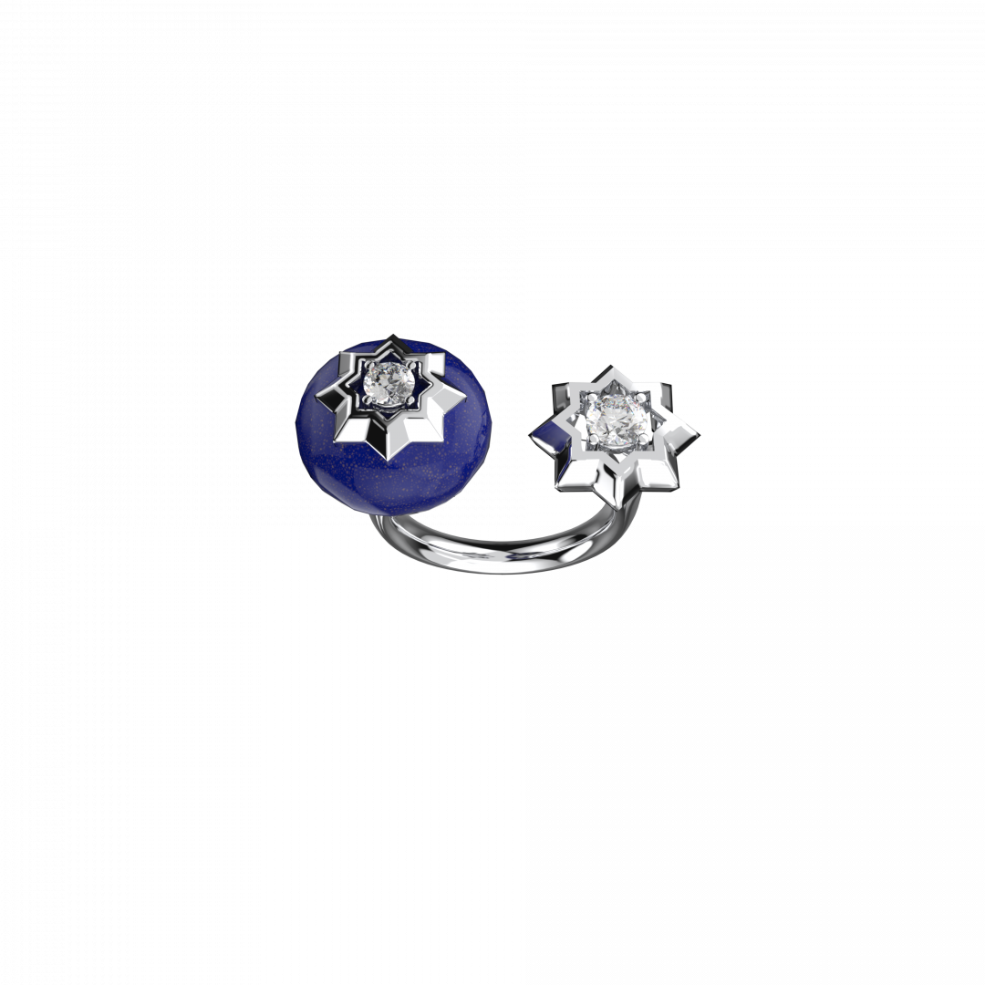 Évoquant l’élégance intemporelle et la splendeur céleste, cette demi-bague se caractérise par son corps délicat disponible en or blanc, rose ou jaune et une pierre taillée en malachite, cornaline, lapis lazuli ou onyx est délicatement encranée par des étoiles scintillantes, chacune surmonté de diamants d’exceptions.