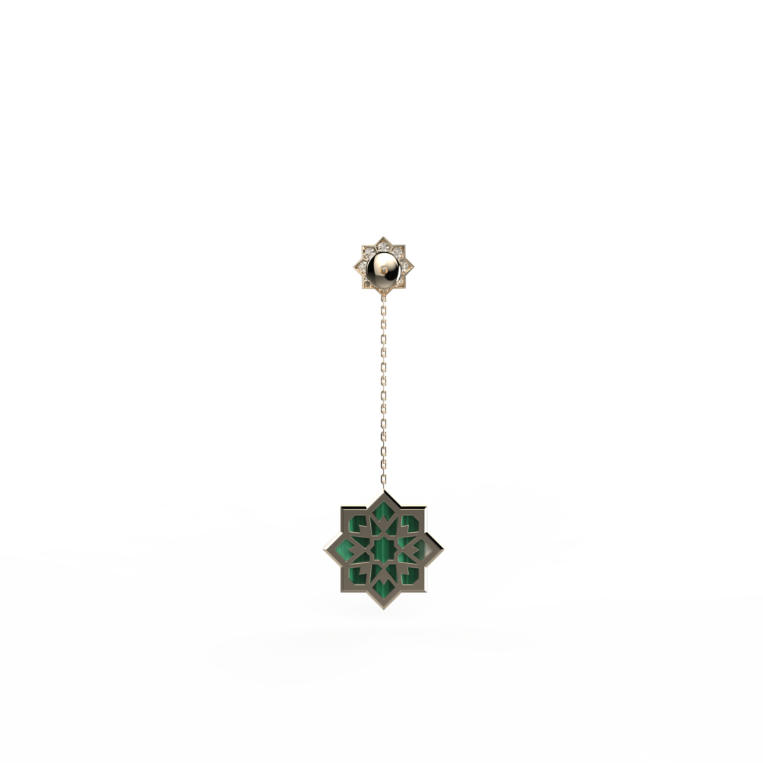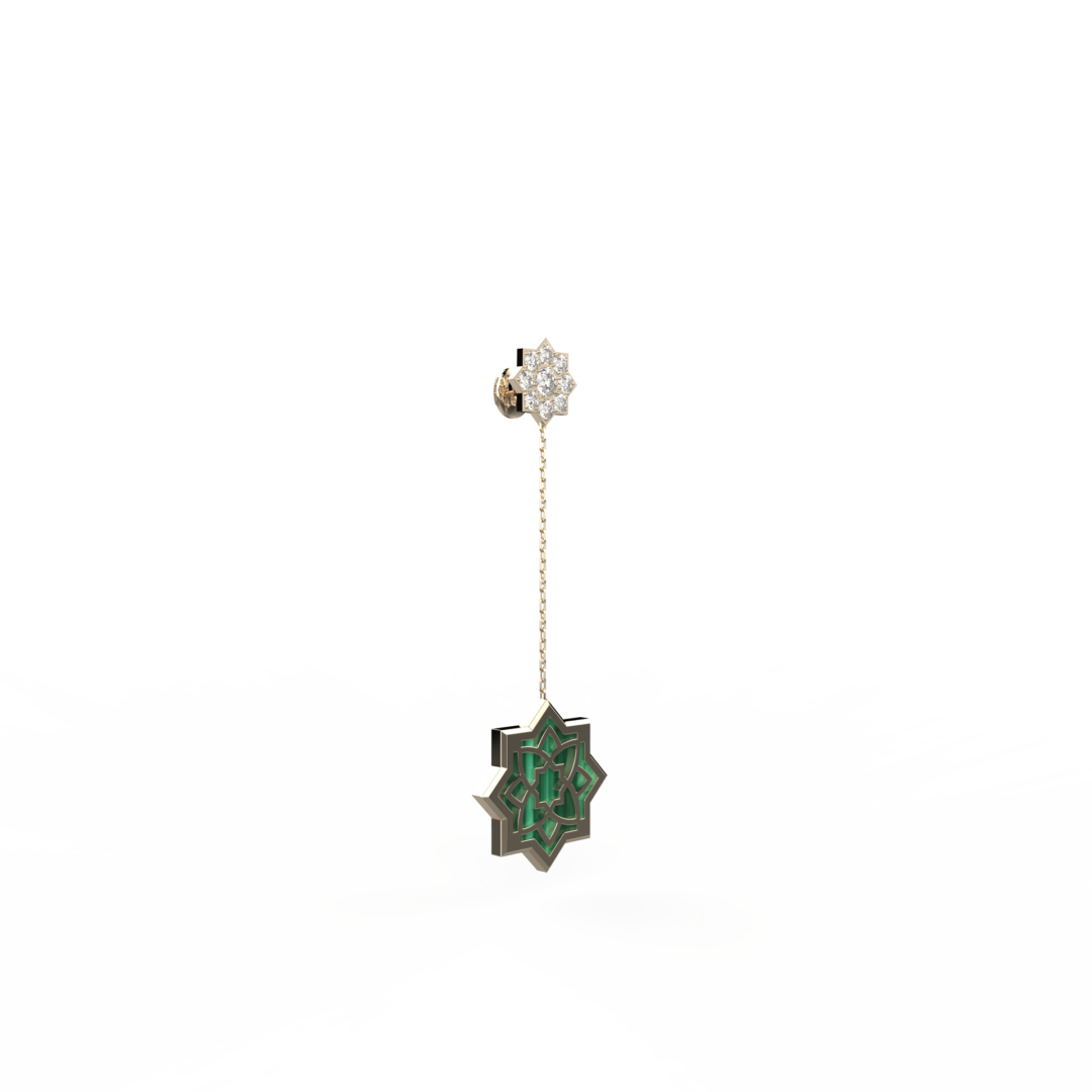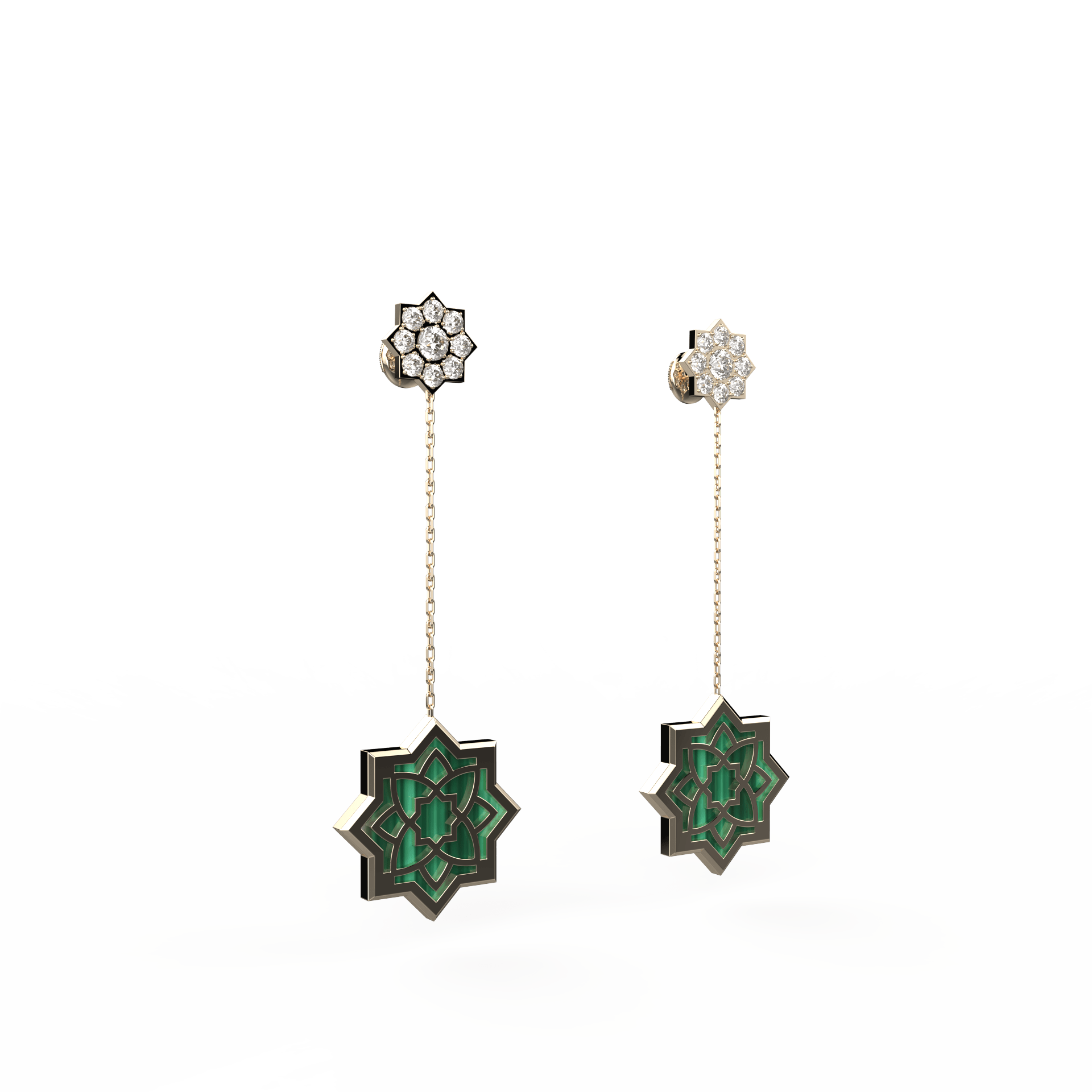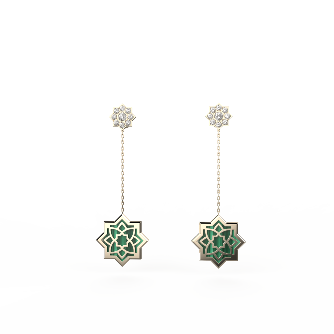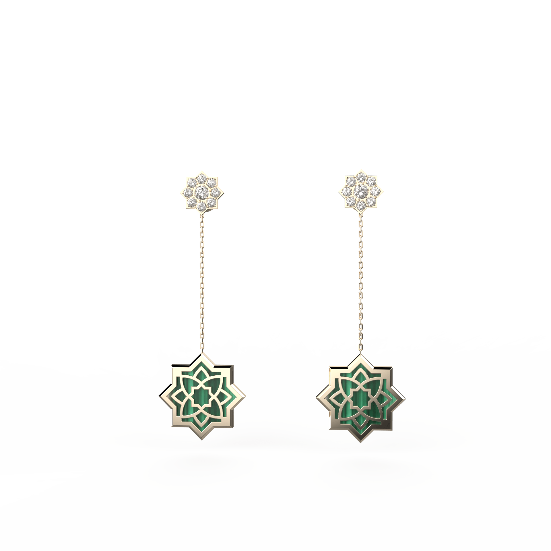 BOUCLES D’OREILLES CAPTIV OR JAUNE MALACHITE ET DIAMANTS