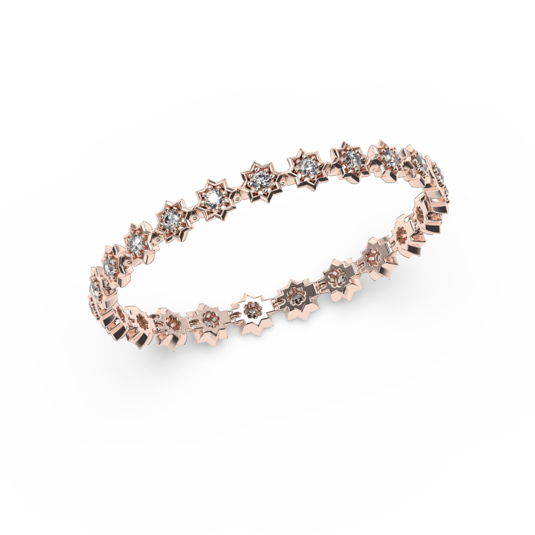 Bracelet constellé, inspirée des corps célestes à 8 branches, ornée de 23 somptueux diamants de très haute qualité. L’audacieuse collection Célestine affirme un goût prononcé pour un luxe affirmé.