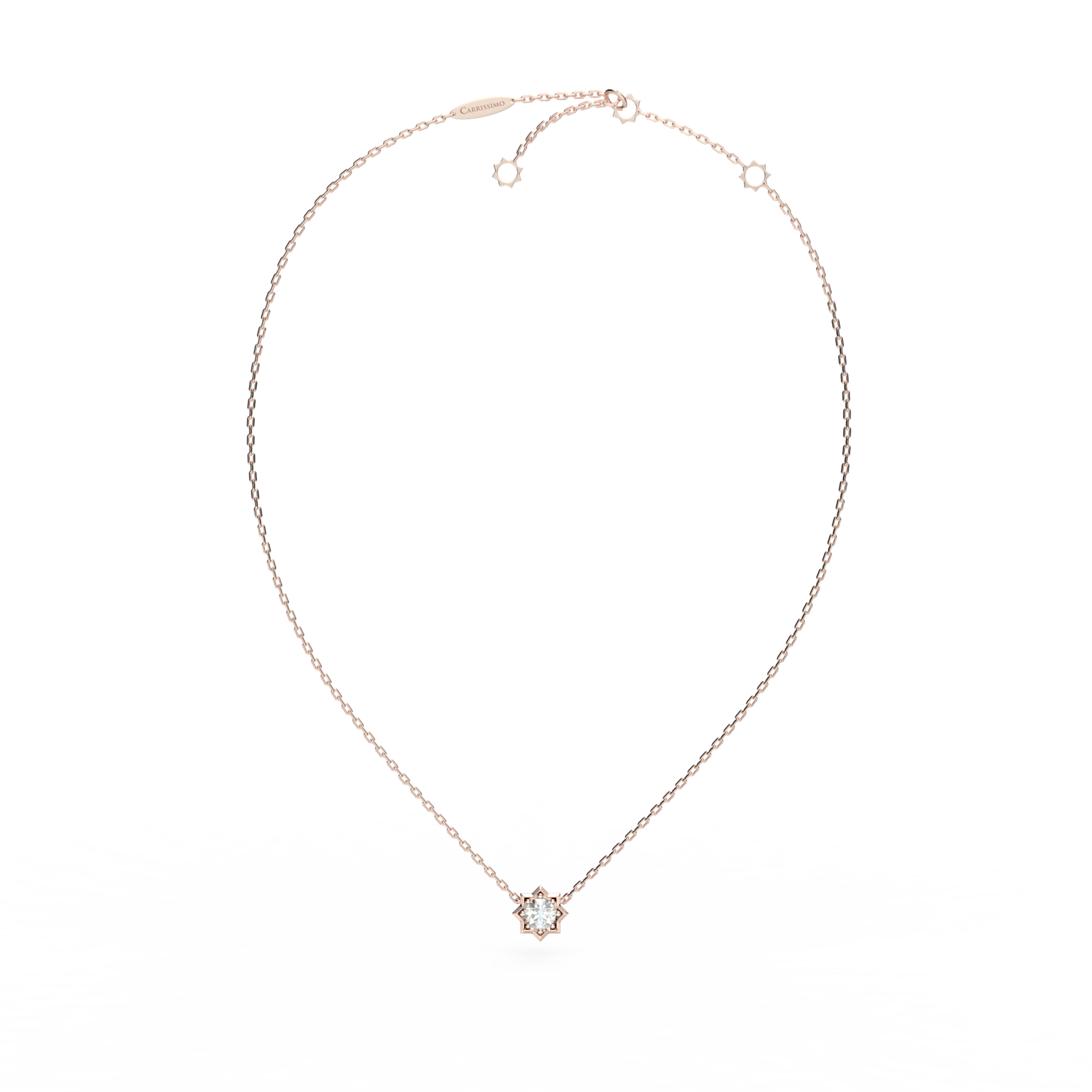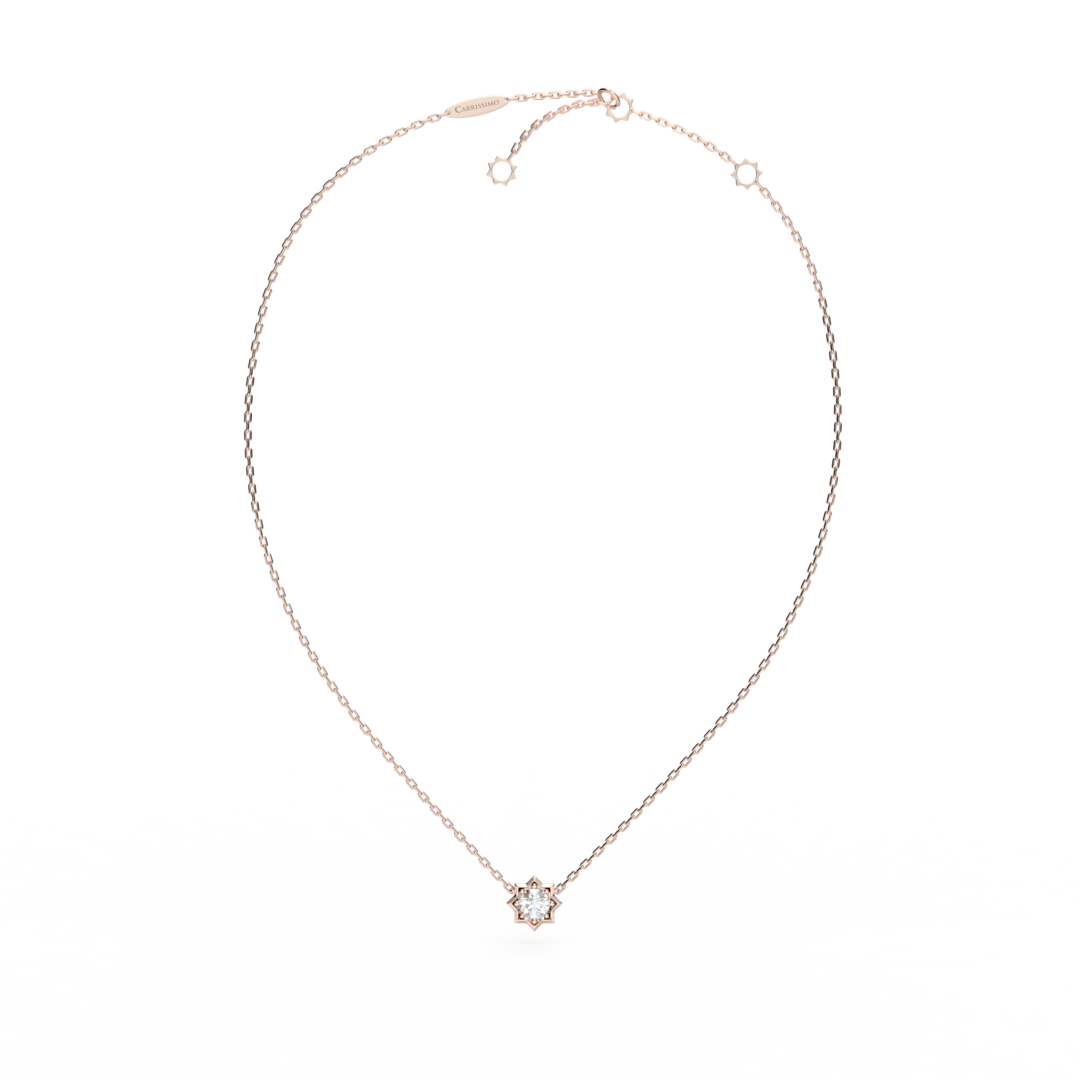 Collier constellée, inspirée des corps célestes à 8 branches, ornée d’un somptueux diamants de très haute qualité. L’audacieuse collection Célestine affirme un goût prononcé pour un luxe affirmé.