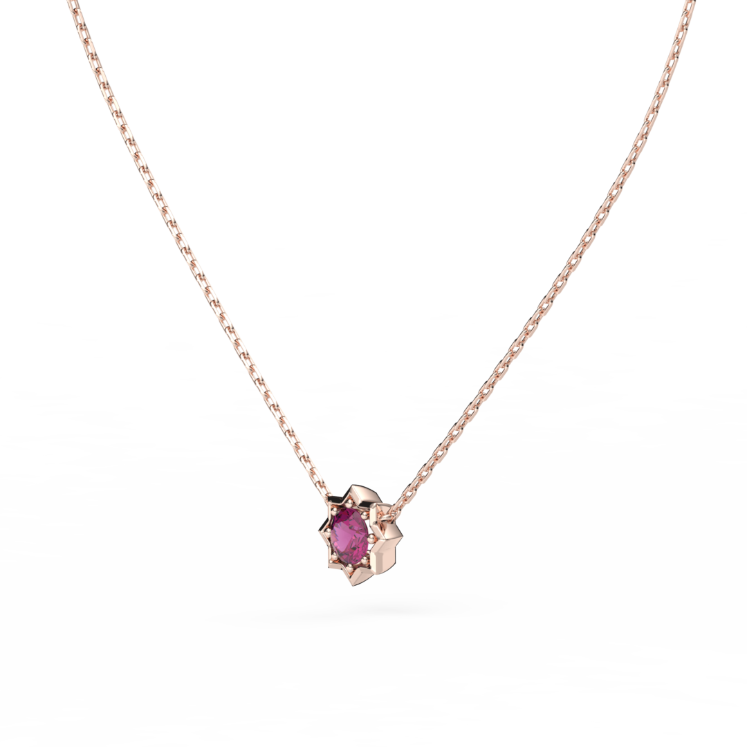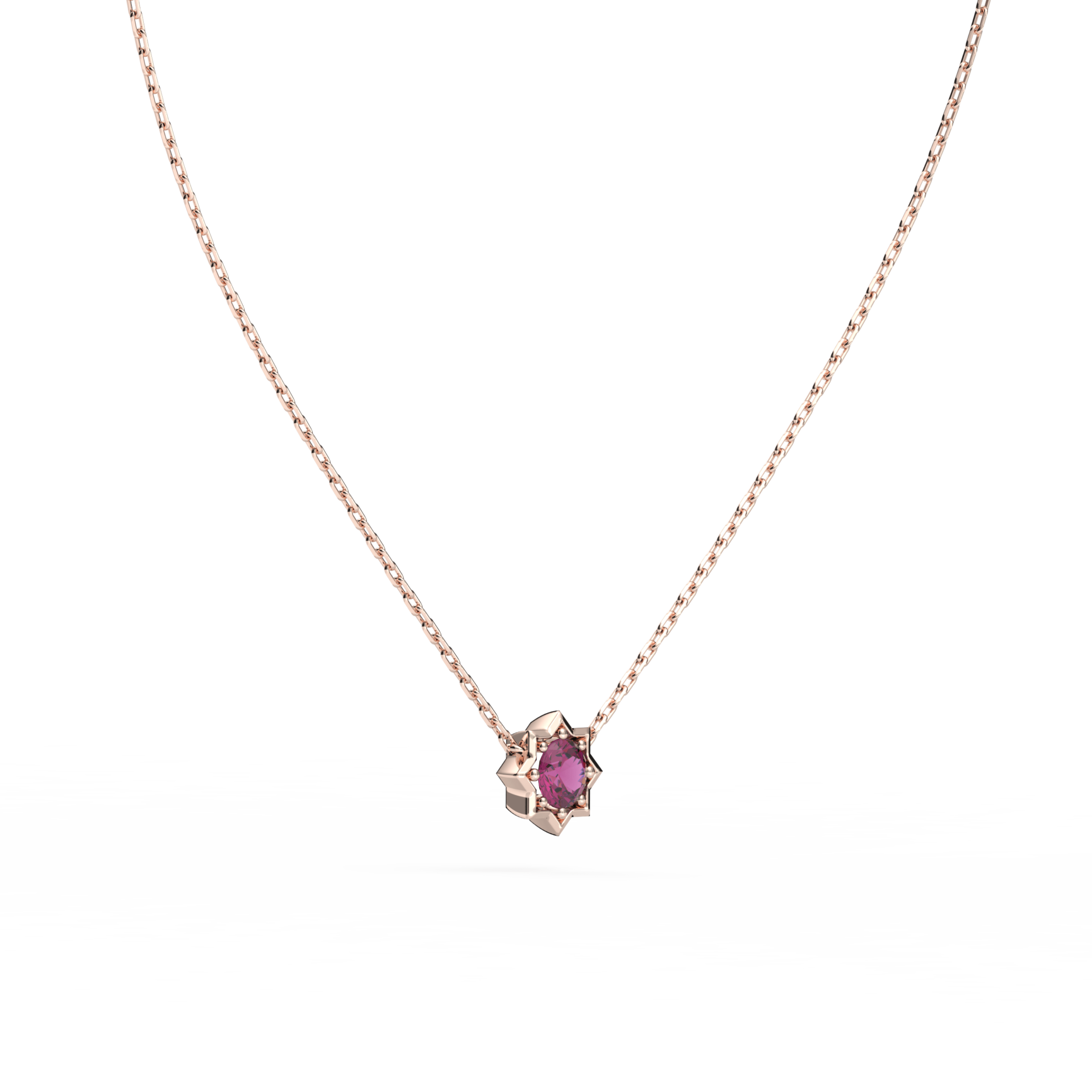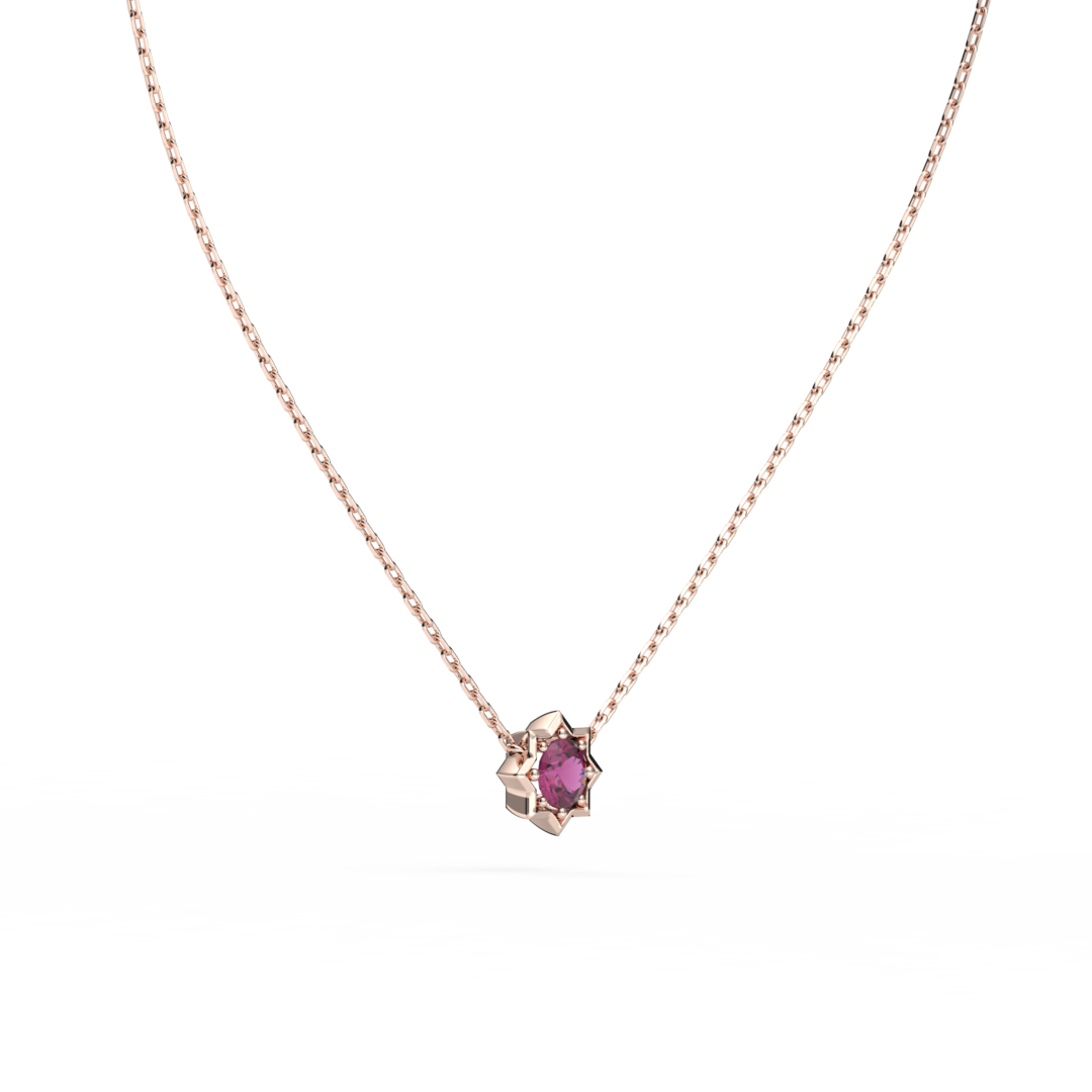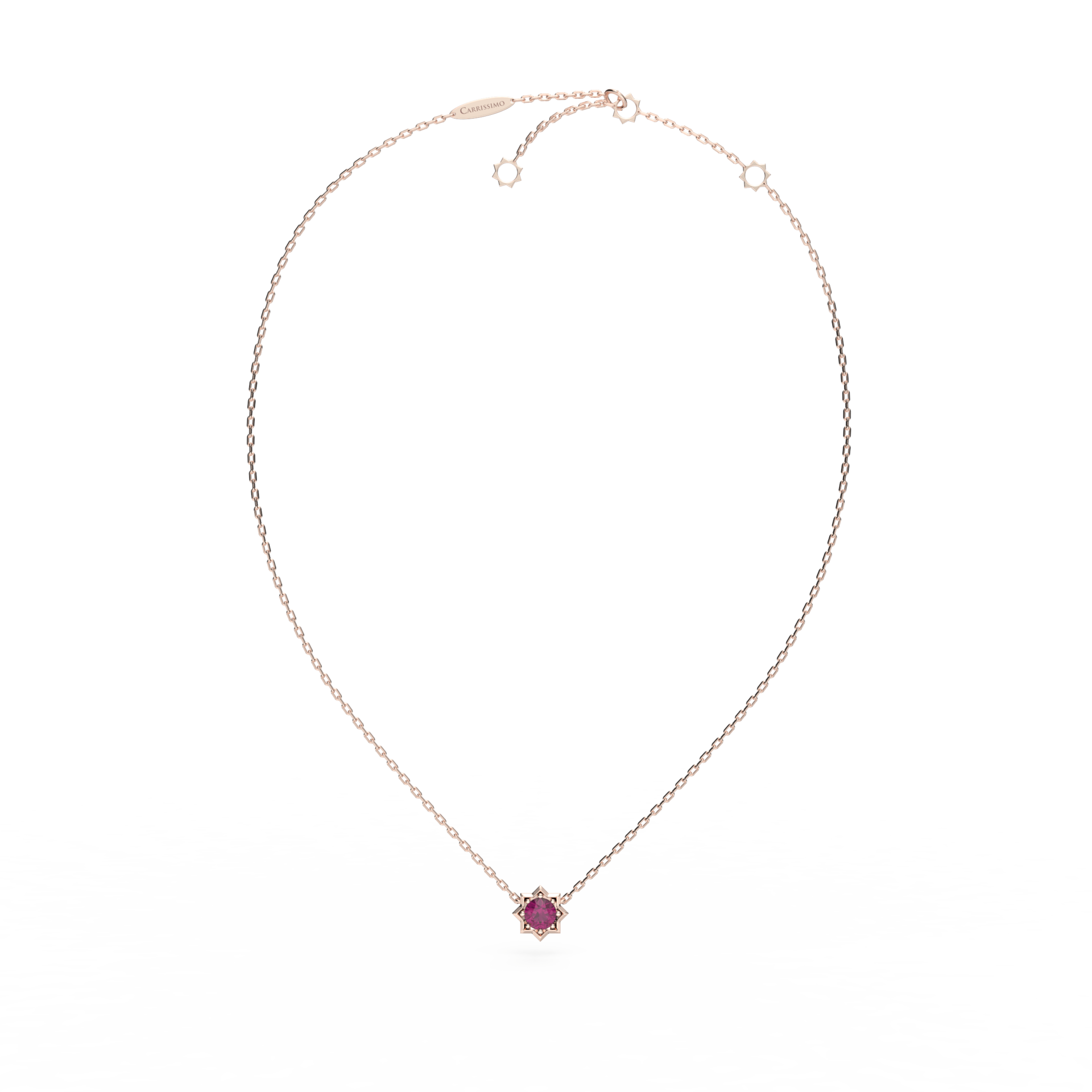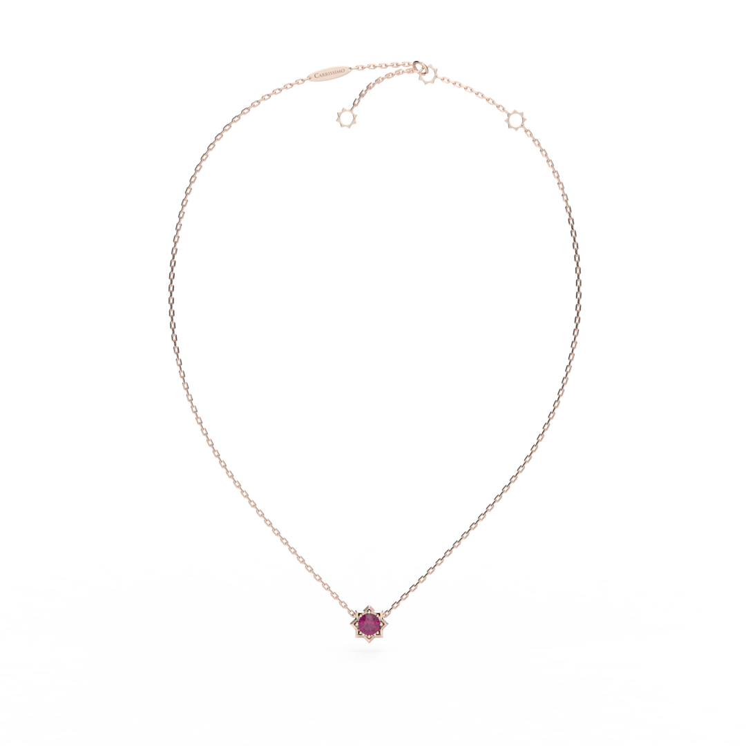 Collier constellée, inspirée des corps célestes à 8 branches, ornée d’un somptueux saphir rose de très haute qualité. L’audacieuse collection Célestine affirme un goût prononcé pour un luxe affirmé.